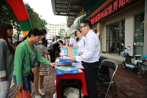 红网郴州站10月10日讯 10月9日是第46届世界邮政日,当天,郴州邮政分公司开展了丰富多彩的邮政日宣传活动。现场工作人员在该公司前坪搭设宣传场所,悬挂宣传条幅,摆放宣传展板,设立业务咨询台,现场解答群众提出的问题,并发放宣传资料,向广大群众宣传相关法律法规以及邮政业务。 (记者 刘小飞 通讯员 曾托莲 摄)