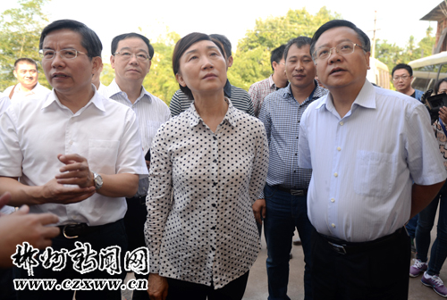 10月14日,省委常委、省委政法委书记李微微在市委书记易鹏飞,市委副书记、市长瞿海的陪同下深入宜章县玉溪镇五都岭村调研。(记者 陈建平 摄)