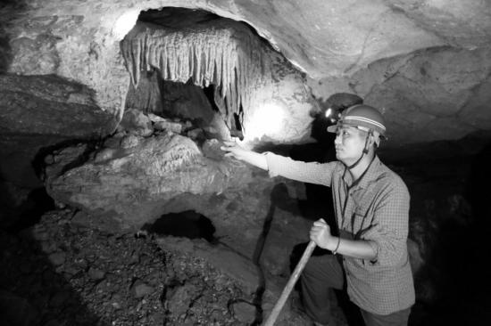 除了冶炼场,联合考察队也对桂阳的矿坑遗址进行了考察。在桥市乡枫树坪村虾背组,考古专家们进入一个只能单个人爬着进去的岩洞。
