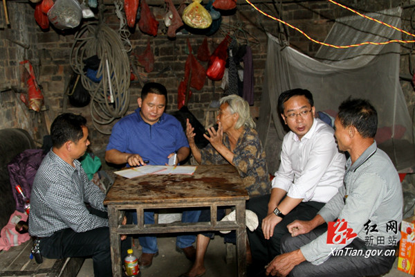 红网新田站10月29日讯(分站记者 唐人杰)10月28日下午,新田县大坪塘镇火柴岭村贫困户刘柏良家中来了一群客人,一家人很是高兴,主人的小孙女还大方地唱起了歌,屋里欢声笑语不断。原来是联系火柴岭村的省新闻出版广电局的领导干部正在他家开展精准扶贫活动。