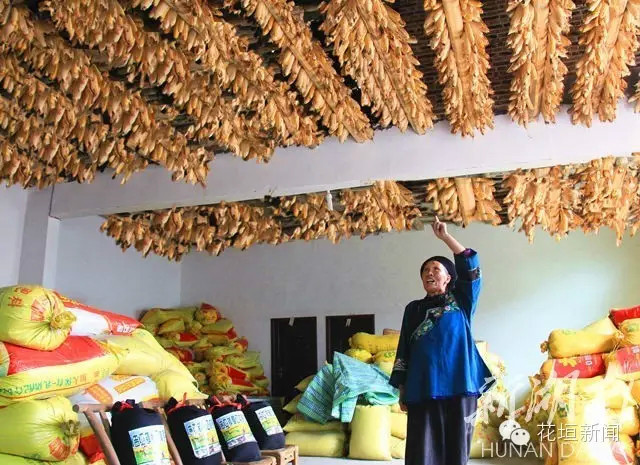 10月28日,花垣县吉卫镇腊乙村,农户家里堆满了稻谷,挂满了玉米。今年以来,该村创建传统生态农业合作社,种植生态粮食,前来订购的客户络绎不绝。新湖南客户端 张耀成 摄
