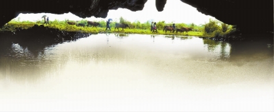 他指着前面窄窄的洞口说:“这是个天然石洞。传说最早只有80斤重的牛才进得去。后来,瑶胞把洞口凿宽了。现在,人过不用低头,千斤水牯牛出进也不愁。”