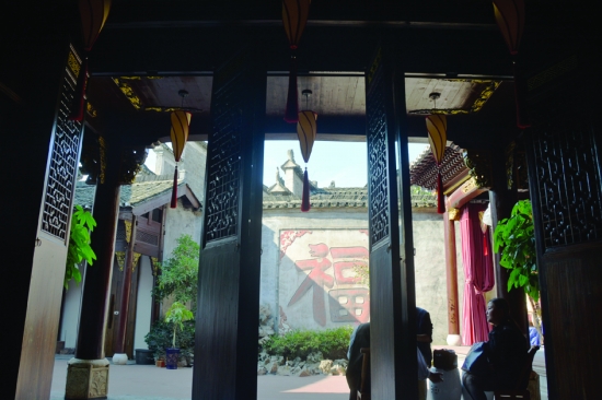 史料记载,凤凰建城历史可以追溯到唐朝,唐永隆年间,以现在沱江镇为“五峒”中心,修土围城堡,开建衙门。宋神宗时期,在此设立经制五寨。元明时期,建置五寨长官司。明嘉靖三十三年(公元1554年),移派麻阳镇筸参将进驻五寨,始建砖城。至清顺治三年(公元1646年),镇筸参将升为副将。清康熙三十九年(公元1700年),沅州镇由芷江移防五寨,改称镇筸镇。图为田兴恕旧居,从前厅望外,照壁上一个大大的“福”字。