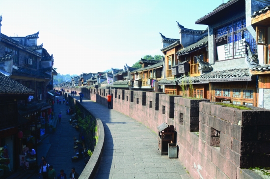 两山排闼,一水穿城。或许,这依山傍水的地理形势,正好成就了凤凰古城恰到好处的军事防御格局。从亭子关始,走进凤凰区域性防御体系,一路往东,辗转,折回,前行,忘却了一路上的艰辛。终于,在凤凰古城停下脚步,这座曾被称为“镇筸”的千年古城让人怦然心动———它是整个防御体系的核心。图为旧址上恢复重建的凤凰古城墙。