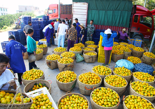 红网郴州站11月3日讯 10月30日,外地客商在资兴市清江乡收购蜜桔,收购价达到了每公斤3至5元。清江乡地处东江湖腹地,得益于湖区良好的生态环境与气候条件,柑桔产业已成为这个移民乡镇的第一产业。目前清江乡柑桔种植面积达2.5万亩,年产鲜柑1.2亿斤以上,年产值超过2亿元,产品畅销全国各地及俄罗斯、香港、东南亚等国家和地区。