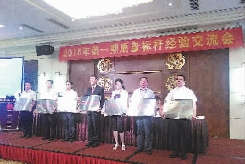 泰富重工总经理申小卫(右二)代表集团在工业企业质量标杆颁奖仪式上领奖。郭里 摄